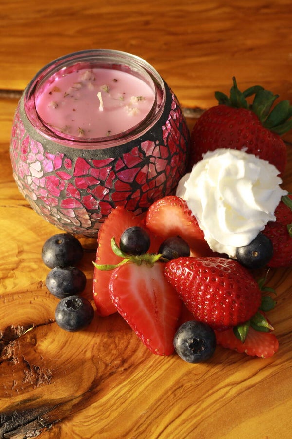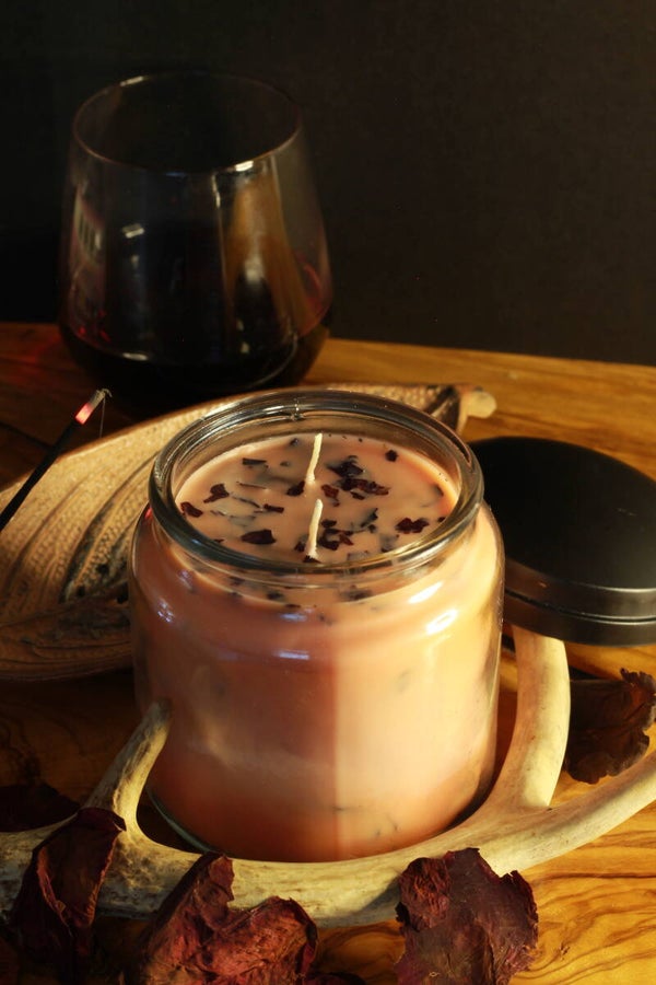 Hand poured with a mixture of waxes and fragrant essentials oils.